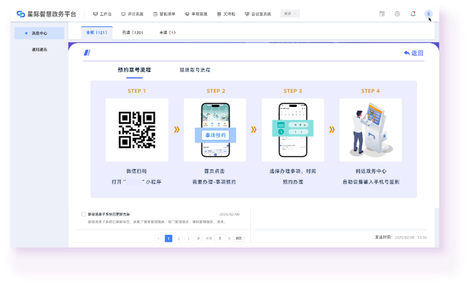 根据用户预约信息和实时排队情况,自动分配排队号码。通过显示屏或手机推送叫号信息。