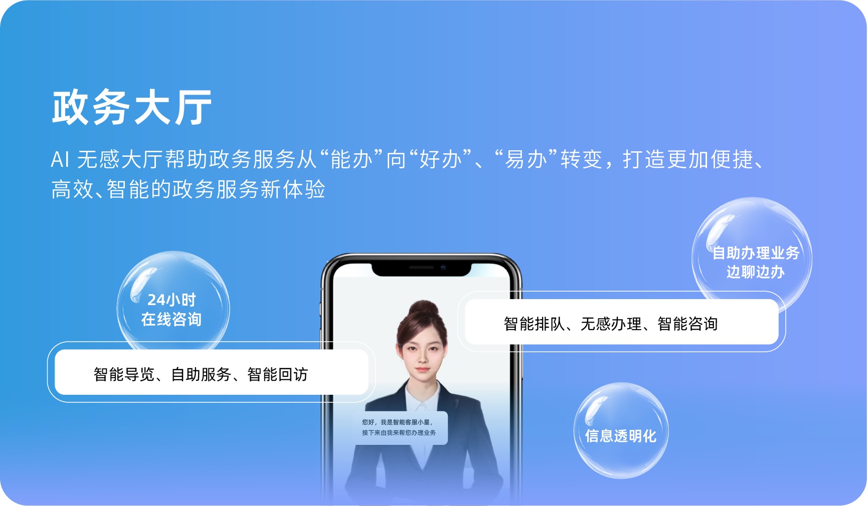 虚拟助手通过语音或屏幕交互,提供办事指引和问题解答。