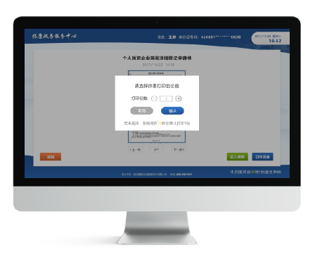 支持指定事项自助申报功能,自动填入个人身份信息; 支持虚拟键盘或手写进行文字录入、资料自助扫描功能,扫描过程所见即所得,申报完成后打印受理通知书。