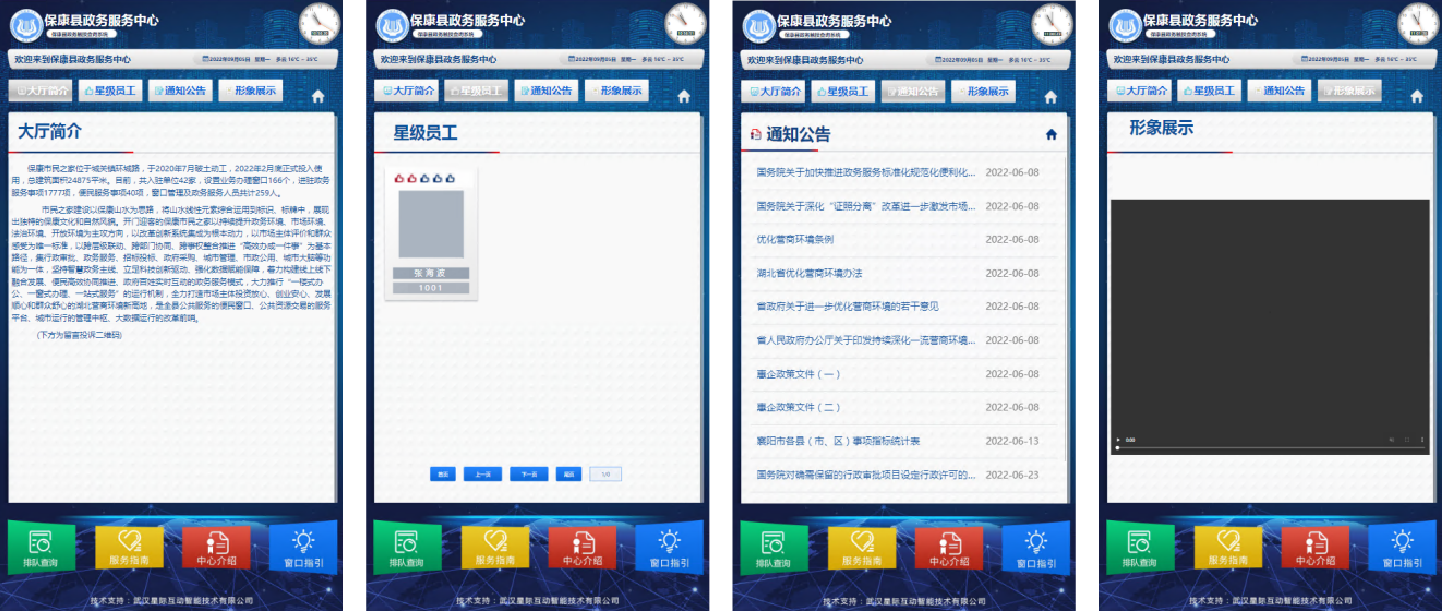 支持将展示政务服务中心形象的音视频、图片等素材在相关查询设备上滚动展示。