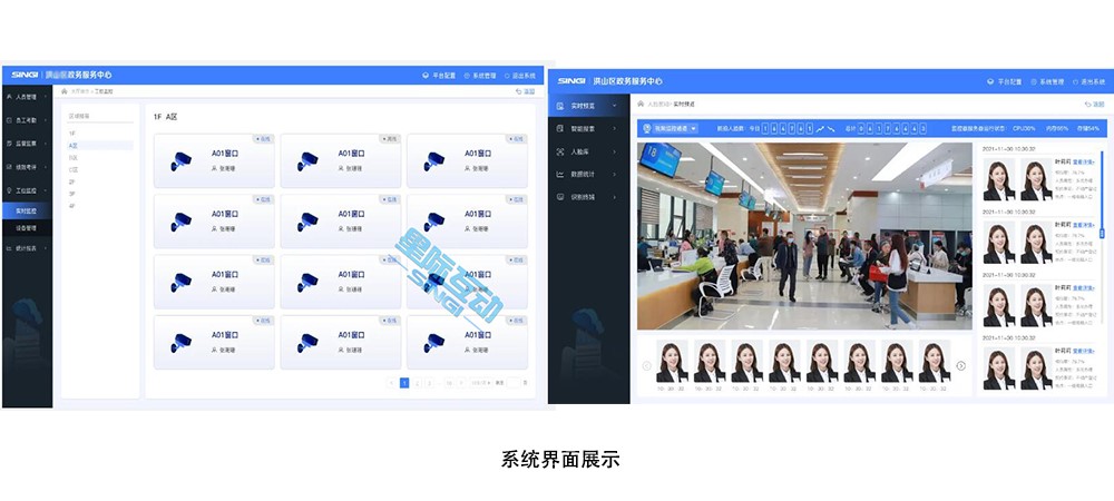 通过与审批系统、考勤系统、排队叫号系统、视频监控系统等对接,实时动态监管大厅所有窗口状态信息,异常等